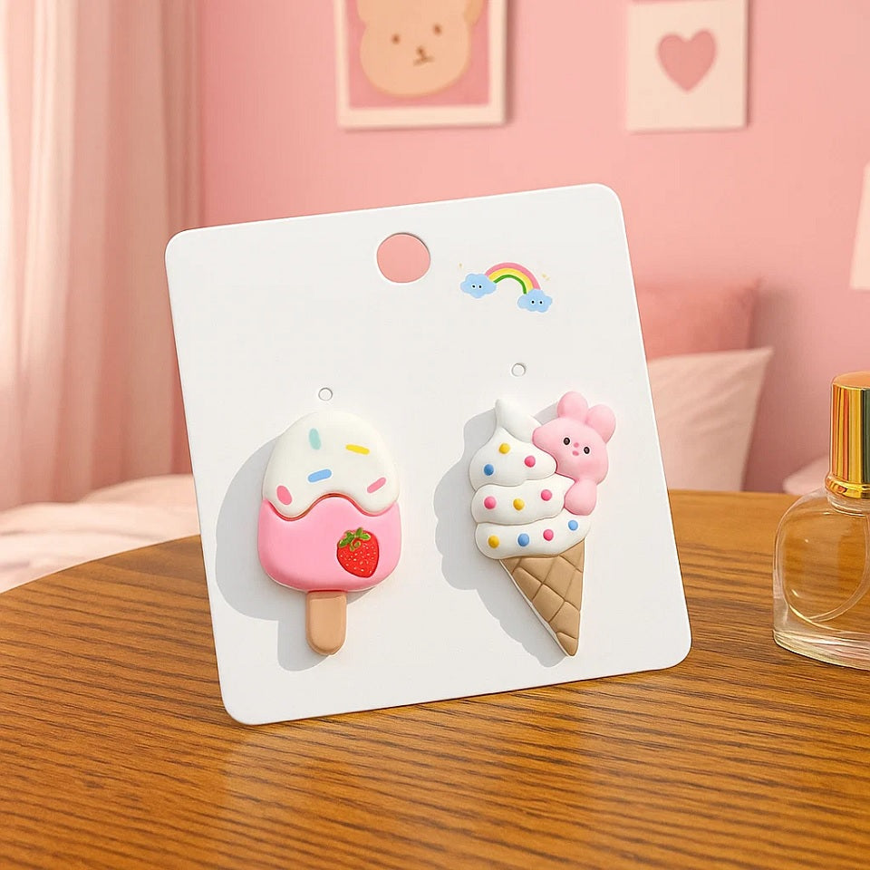 Ces boucles d'oreilles sont une véritable invitation à la gourmandise et à la fraîcheur estivale ! En forme de glaces délicieusement crémeuses, elles sont parsemées de pépites de sucre colorées, apportant un éclat sucré et festif. Le petit lapin rose, craquant et espiègle, ajoute une touche adorable et rigolote, pour un look fun et plein de charme. Parfaites pour ajouter une touche estivale et pleine de fraîcheur à vos tenues, ces boucles d'oreilles sont le choix idéal pour un look gourmand et ludique !
