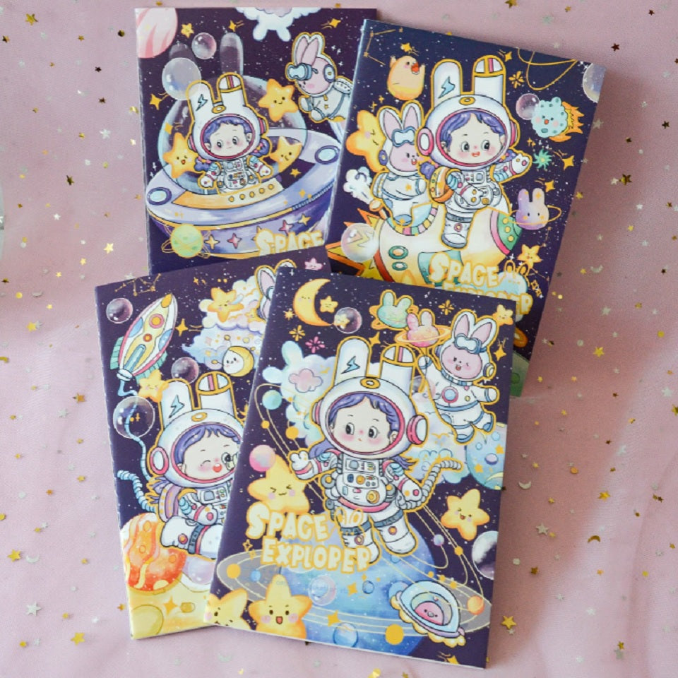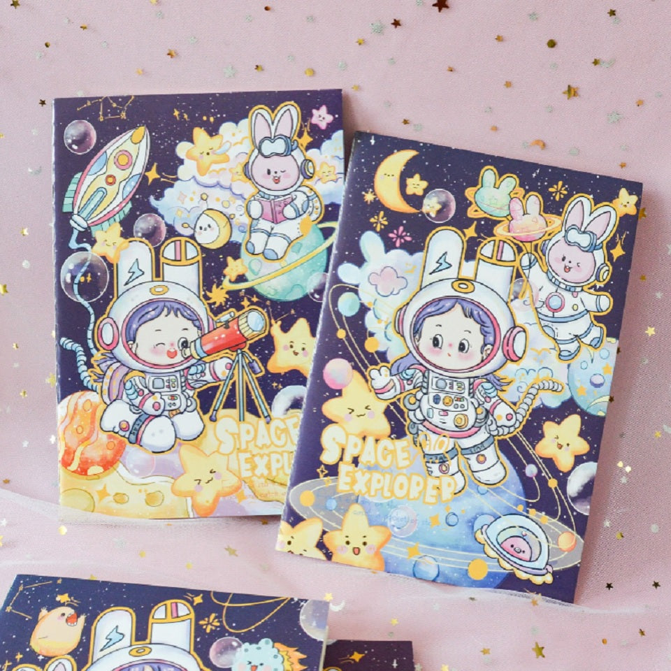 Chaque carnet est illustré de motifs spatiaux kawaii, mettant en scène des planètes souriantes, des étoiles pétillantes, et des vaisseaux spatiaux mignons. Les couleurs vives et les designs charmants apportent une touche de fantaisie à chaque page, rendant vos notes et croquis aussi extraordinaires que les galaxies lointaines.