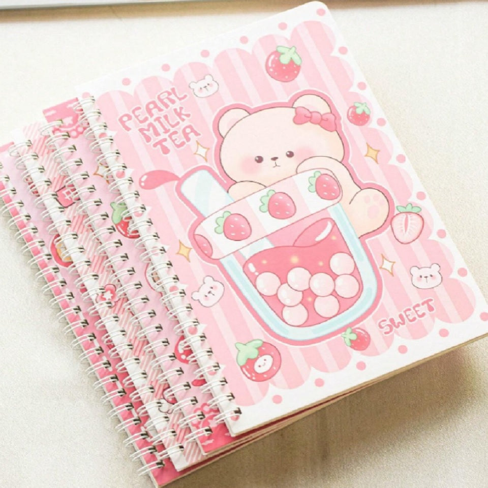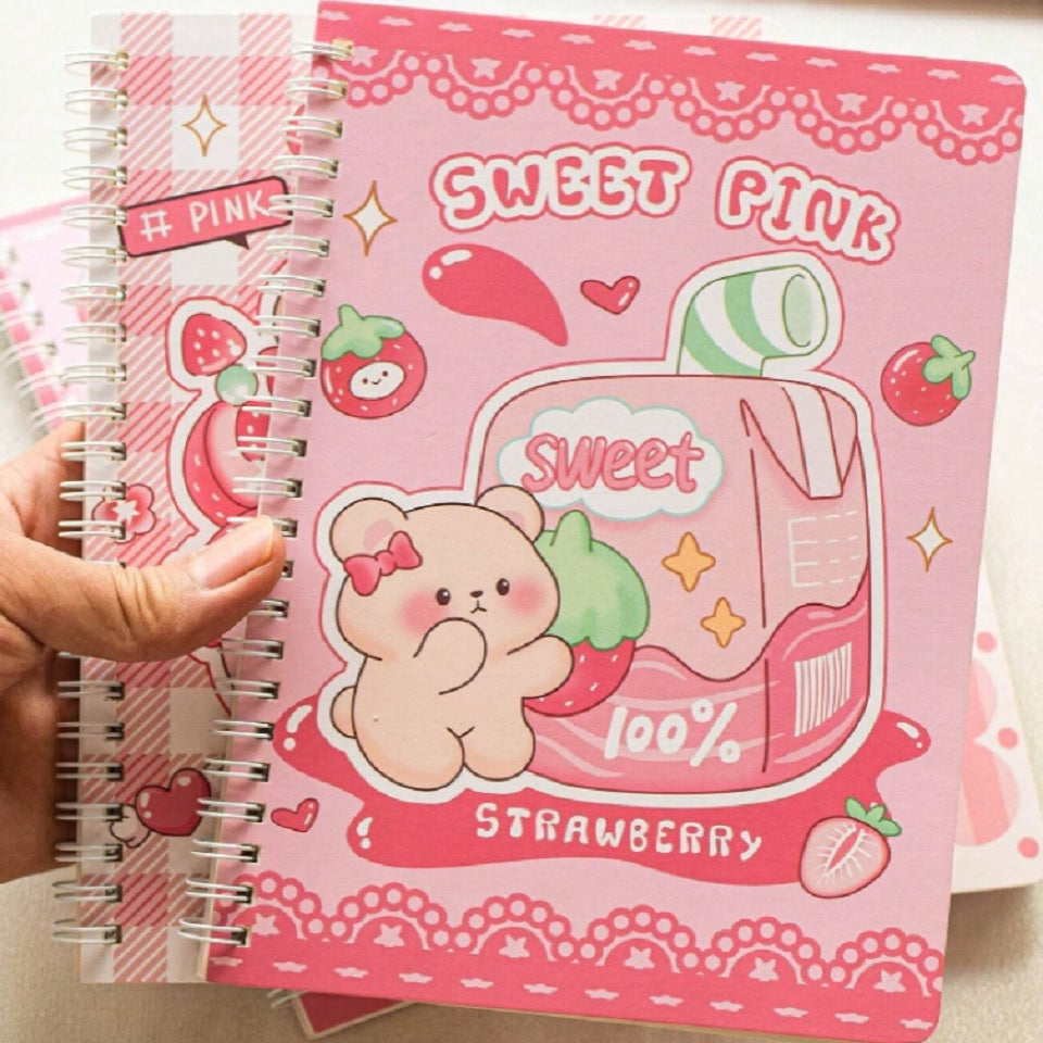 Parfaits pour les amateurs de douceurs, ces carnets présentent des desserts irrésistibles dans un style kawaii et girly : un bubble tea crémeux, une glace délicatement colorée, un donut aux paillettes et une briquette de jus fruité, tous illustrés avec une touche d'adorabilité qui fera fondre votre cœur.