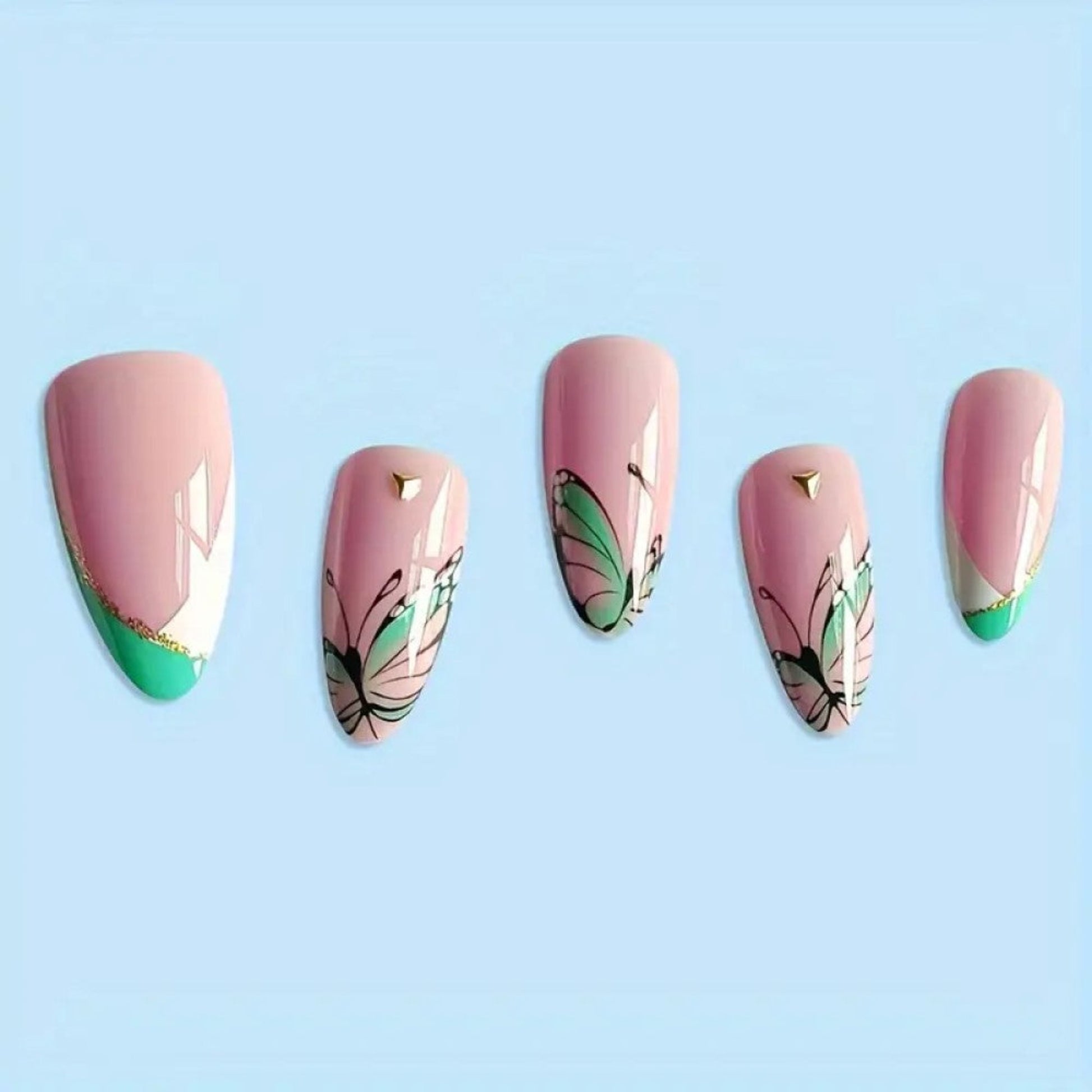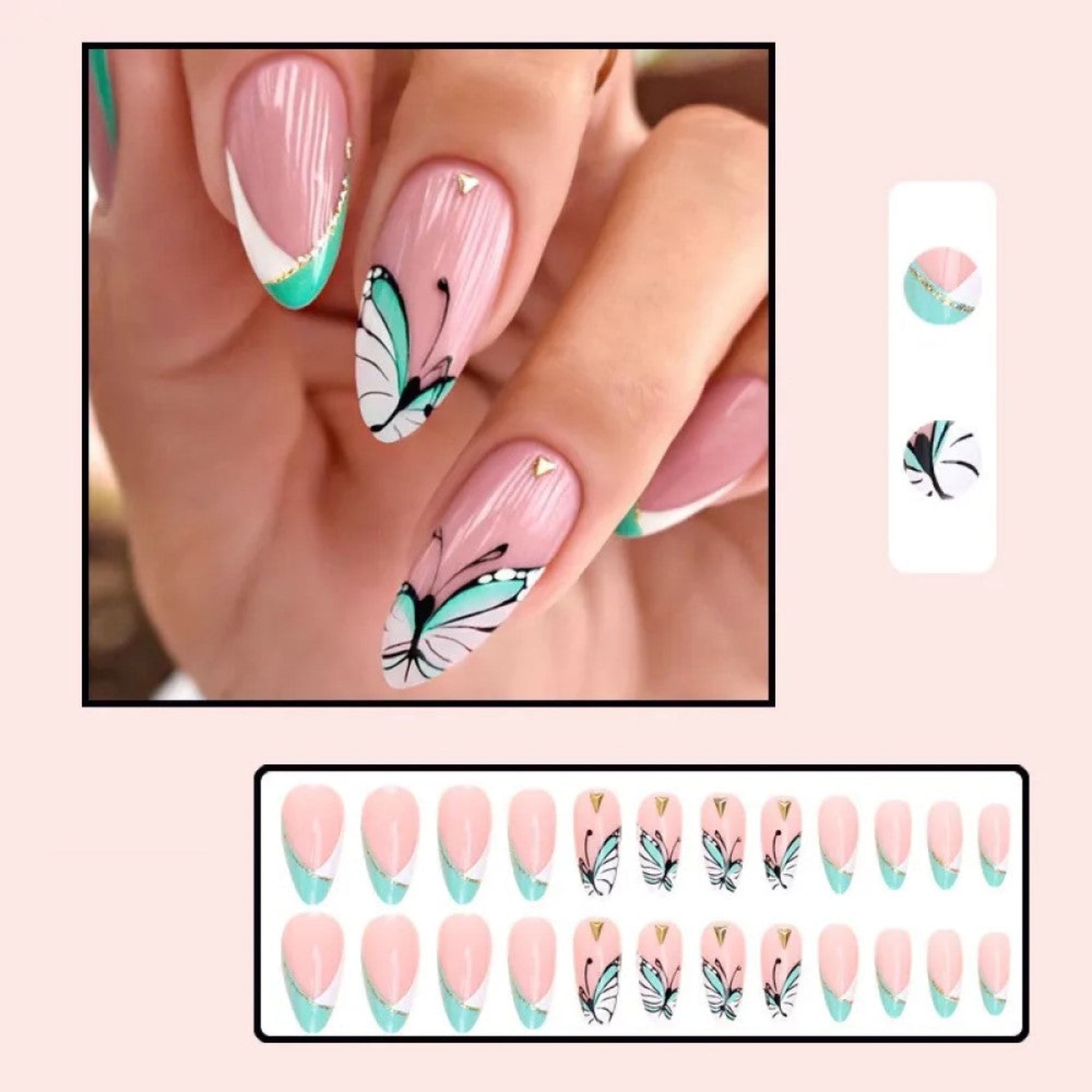 Ces faux ongles au motif de papillons verts et blancs sont à la fois élégants et pratiques. Les motifs de papillons ajoutent une touche de fraîcheur et de délicatesse à vos ongles. Plus besoin de rendez-vous chez le salon de manucure, ils sont prêts à l’emploi. Il vous suffit de les coller sur vos ongles naturels à l’aide des stickers fournis. Pas de temps d’attente, pas de séchage, juste une manucure instantanée.