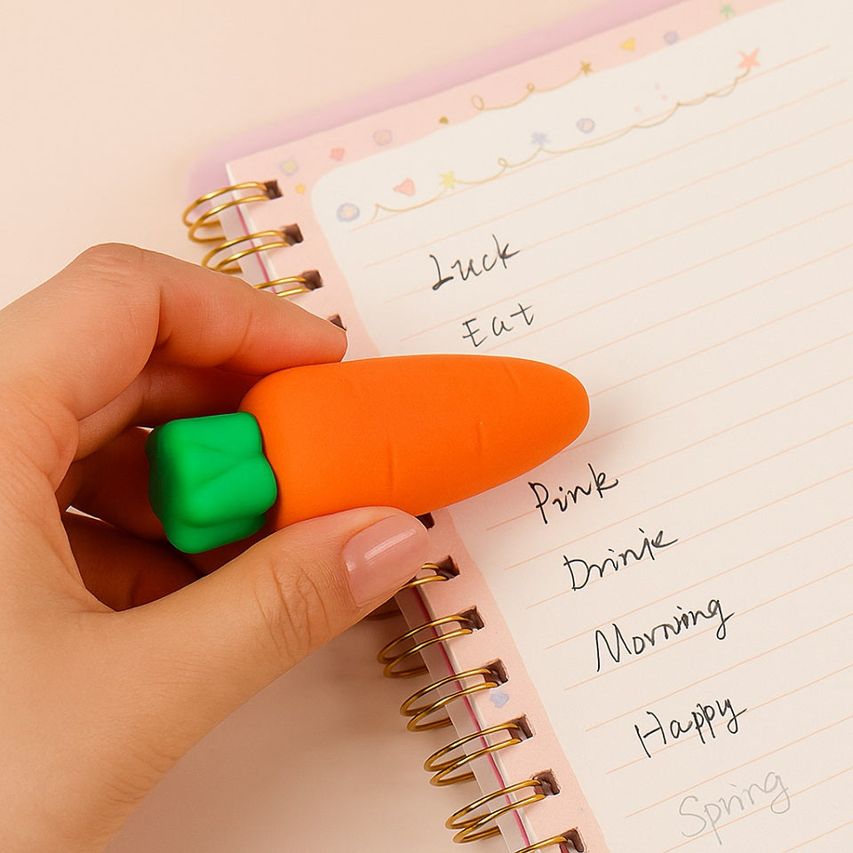 Attention, ne la croquez pas ! Cette gomme en forme de carotte ultra réaliste est un véritable petit bijou de trompe-l'œil. Avec sa forme allongée et ses détails soignés, on jurerait une vraie carotte fraîchement sortie du potager !