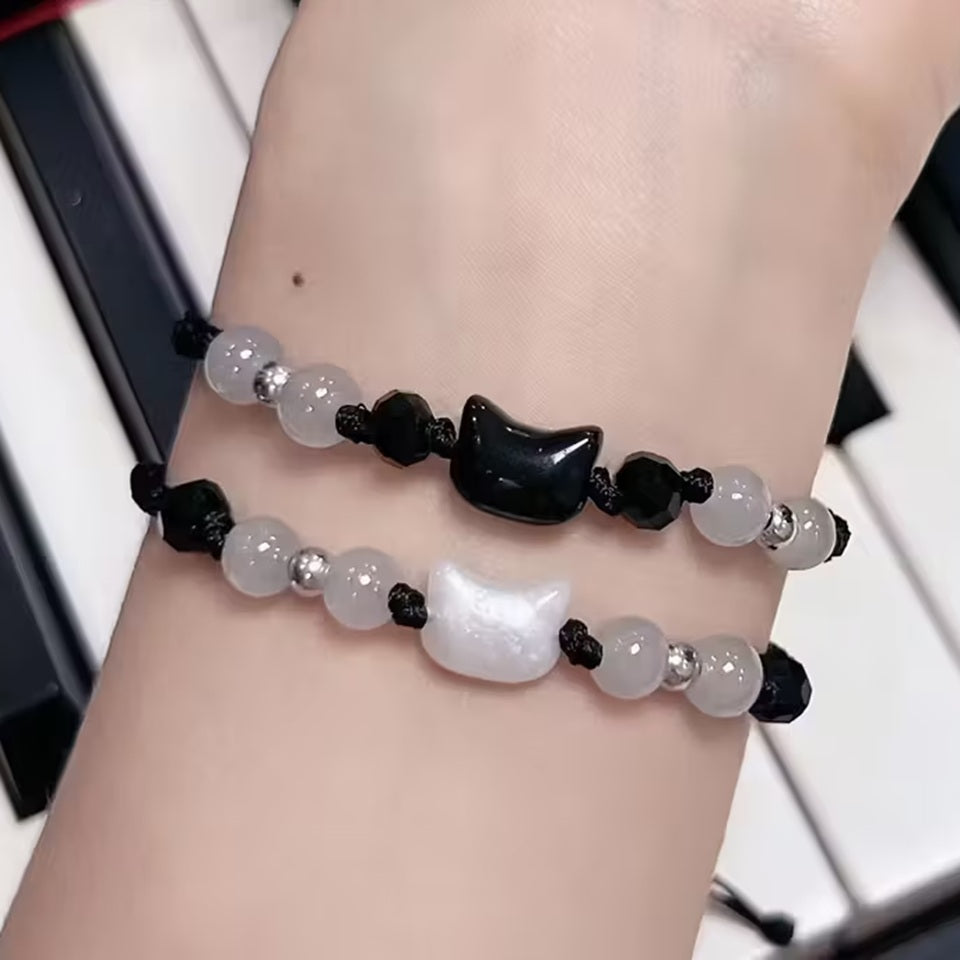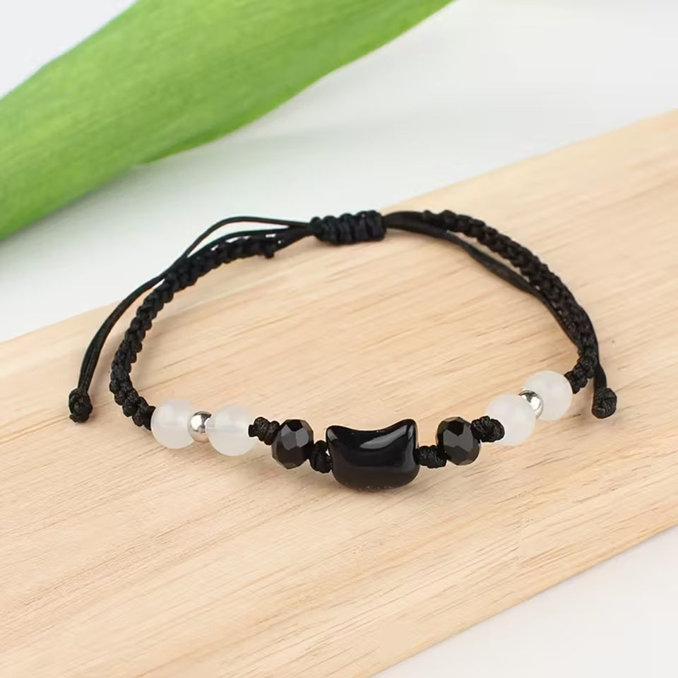 - un superbe bracelet perles et tête de chat (coloris blanc ou noir/bracelet corde/long max:20cm)